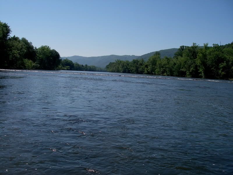 I managed to sneak away while the others were sleeping in late....This was a stretch of river that I wade fished for a couple hours in the morning. Caught about 20 smallies, but only 3 were of decent size....(over 15"). You couldn't have asked for a more beautiful morning.