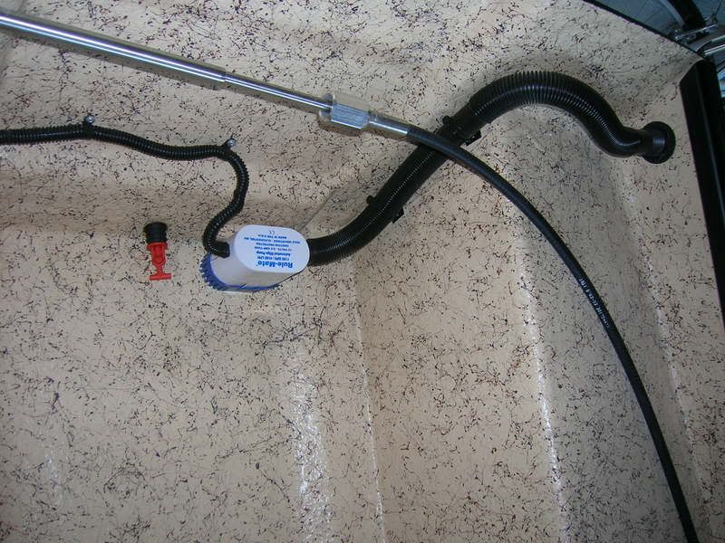 bilge pump, the clear hose I had in first picture was to stiff, so I went back to some I had left over from my Classic last year, than Red Dog now owns, the one he calls "Davids Boat"