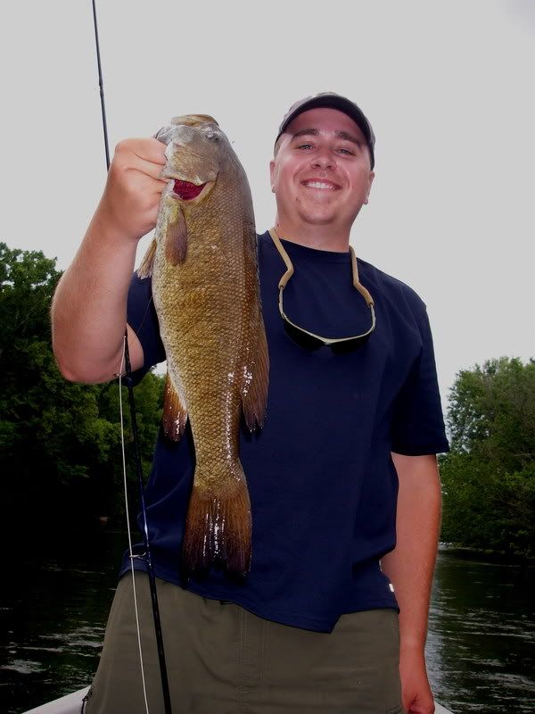 Spotted this guy "piggy-backing" a HUGE 35+ lb carp. I thought he was a carp too, at first....About 5 feet from the boat in 1.5 feet of water---I splat the fly on his head, and he SLAMMED it! Splashing water against the boat as he pulled the rod under the bow, I nearly had a heart attack. Best take on a fly yet.