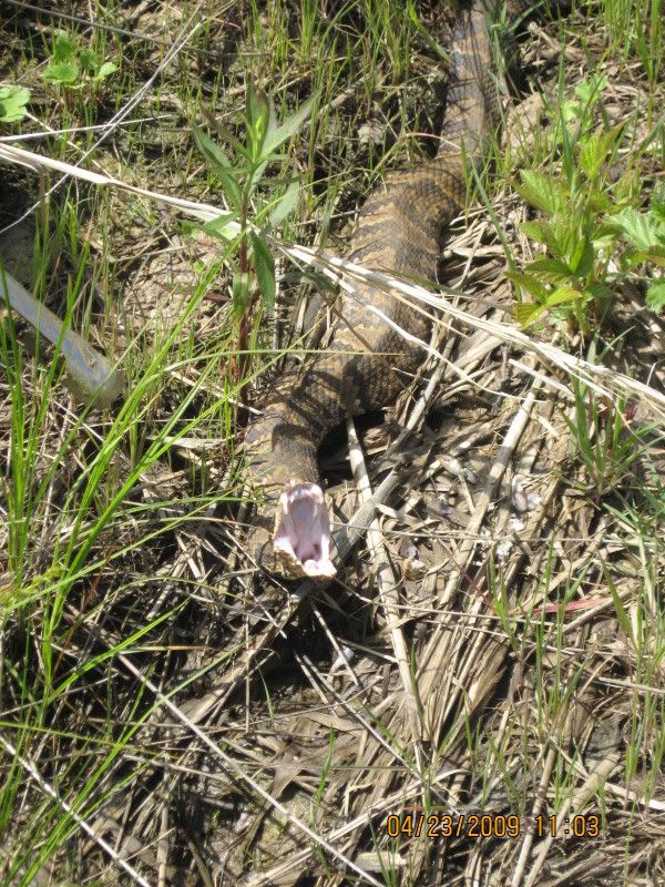 dang, looks more like a rattler to me :o Cottonmouths have been spotted an hour west of Nashville, with the Gore warming, they're moving on up along with armadillos & a roadrunner or two(beepbeep)