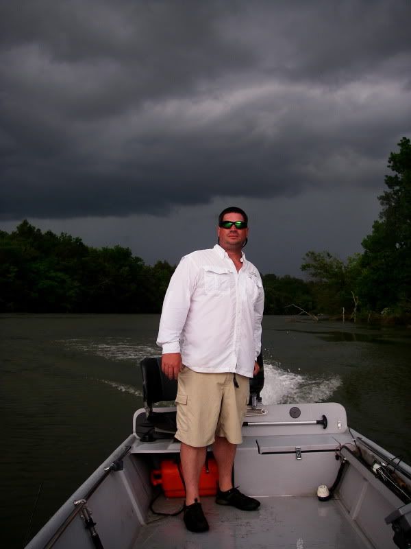 "Naw...those clouds are gonna miss us. Those clouds should help the fish turn on. Seeee..they're veering to our South."