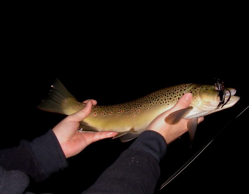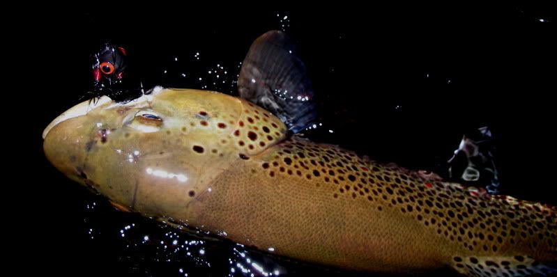My 3:00 AM voyage paid off with this fat hook-jawed brown. A large bust on the surface and the fish proceeded to jump atleast 10 times making some giant splashes as he cleared 2 to 3 feet out of the water.
