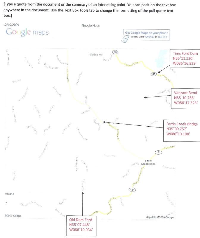 Vanzant Bend, around a 100 yard walk on farm road (stay on road)