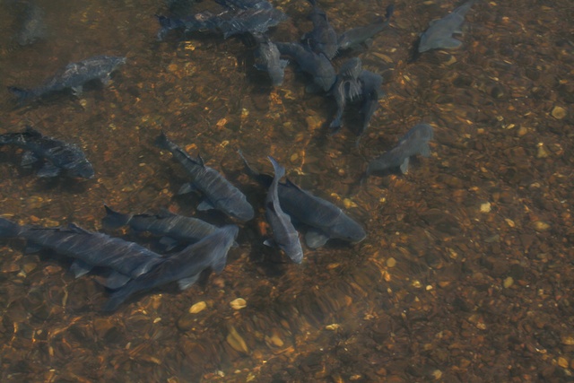 The fish are leaving so if you are going to go up there go down the "normal" runs where they hang are desolate. Thirty or so fish to hand today and thankfully no broken rods. I am thinking a 7wt might be to light for these guys.