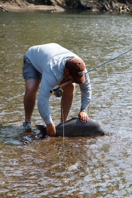 I have been finding big schools of carp on a few area streams. They are up high in the streams on shallow gravel bars right now. Big fun!!!
