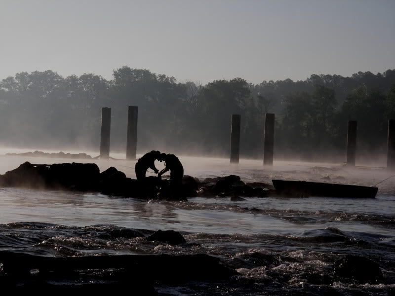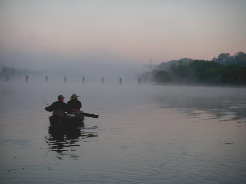 My brother, uncle, future brother in law and myself drove at 4:30 this AM to fish and float 2 boats to a striper hole at dawn. It was a bright clear night sky on the hour drive to the river.