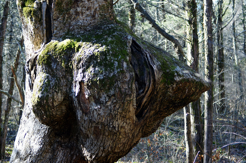 Older male trees will have balding on the top and leaves will be various colors.  The female tree refuses to believe she is a mature tree and uses leaf dye in hopes of being confused with a younger tree.