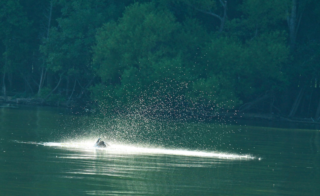 And I'm stuck with a 70-200 and Osprey doing swan dives.. Photography is cruel sometimes. I was shooting into the sun and there was a ton of atmospheric haze (ie the image is dull) in the 100 deg heat with a 200mm lens. Still I got a somewhat kinda sorta decent shot of a diving Osprey. Makes me want more.