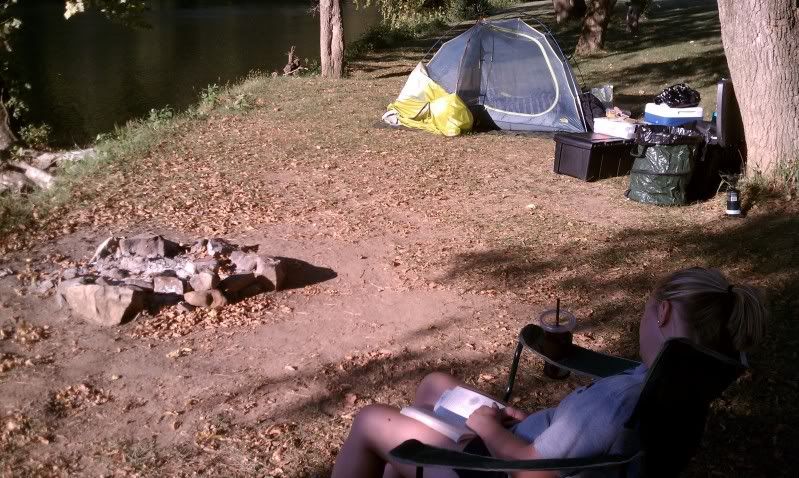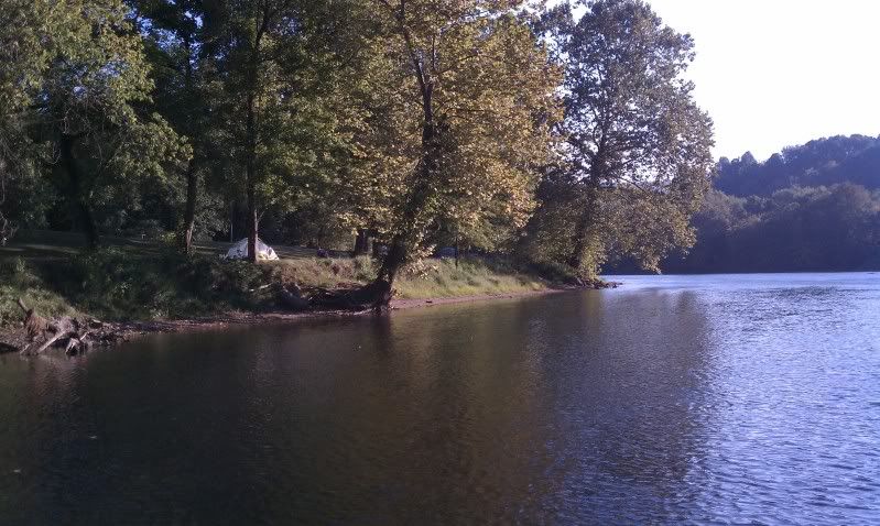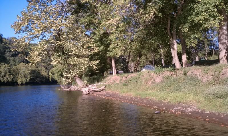 I drifted back to the campsite, got the fire going and the coffee started. The skillet potatoes and sausage got a little burned, but we didn't care....we were happy to feed our bellies with fishing fuel. We arranged for our shuttle, loaded the boat and locked down our gear. As we finished breakfast, two anglers in a small jon boat drift by and I can hear the commotion as they're shouting about the musky that just followed in their plug right in front of our campsite...It's going to be a great day!