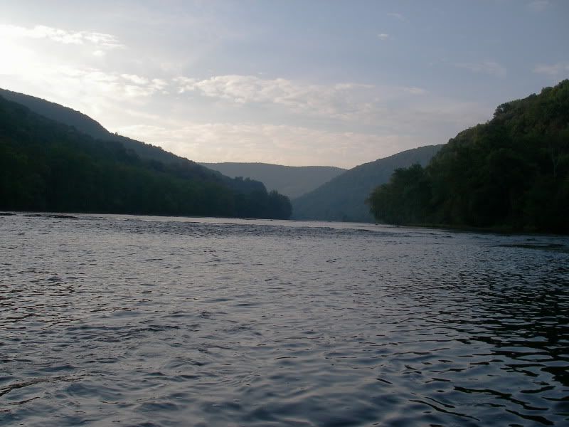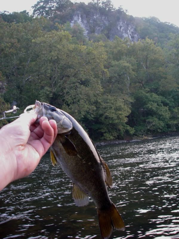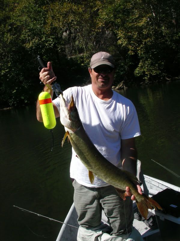 It felt kind of wrong passing by shoal after shoal of perfect smallie water to fish the long, deep pools. But we could already sense evening slippin in, and did not want to get stuck after dark on a 6 mile rocky float. We eased into a tempting deep stretch, and right off the bat, I spotted a fat musky glued to the bottom in 20 foot of water...Game time!!!!!!!