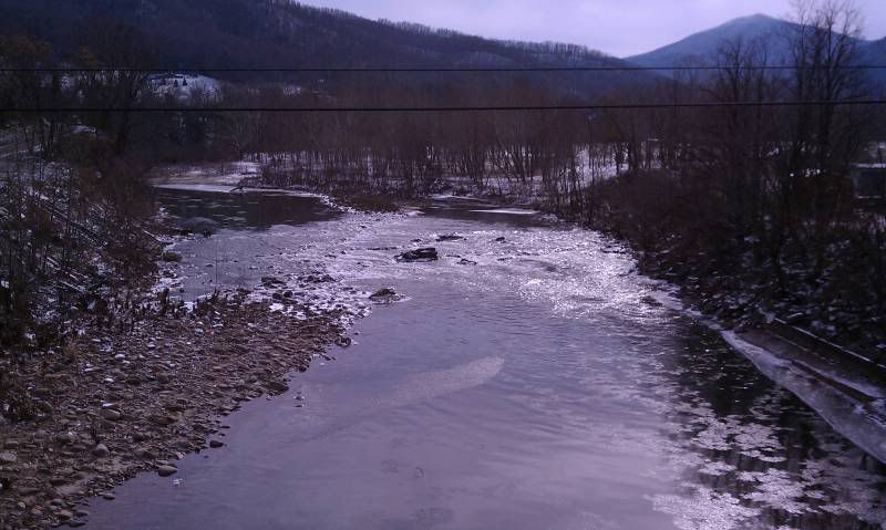 About 800 cfs, and looking awfully good...no ice. If this rain doesn't change it much, Is say it should be prime. I may fish on the crawdad on Fri morning--(may also hike into the gorge, if you want to go)...Heading to the New this weekend for a birthday getaway. Good luck if you hit it Scott.