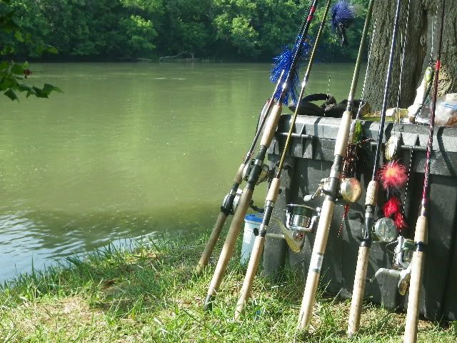 A few more drifts, and no more fish seen, so we motored to a shady bank for some sandwiches and a couple beers. It was getting HOT.