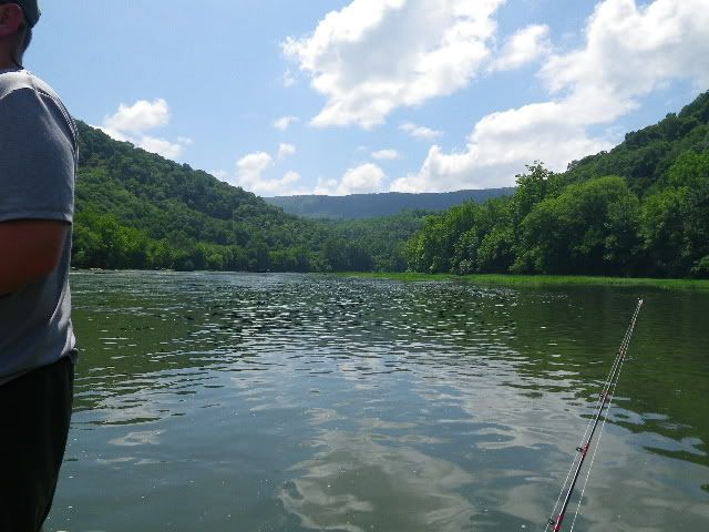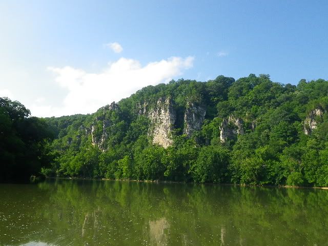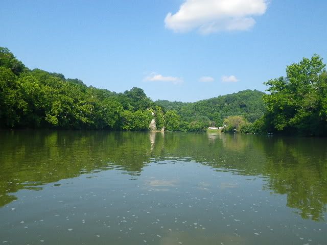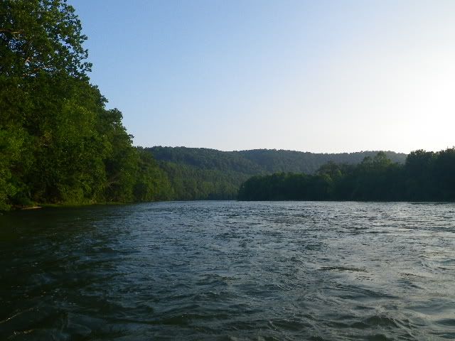 We launched the Jon boat as the last cool of morning burned off into a clear hot day. The water was empty of other musky boats...but a few canoes/kayakers and rafts passed by without any disturbance to our deep run.