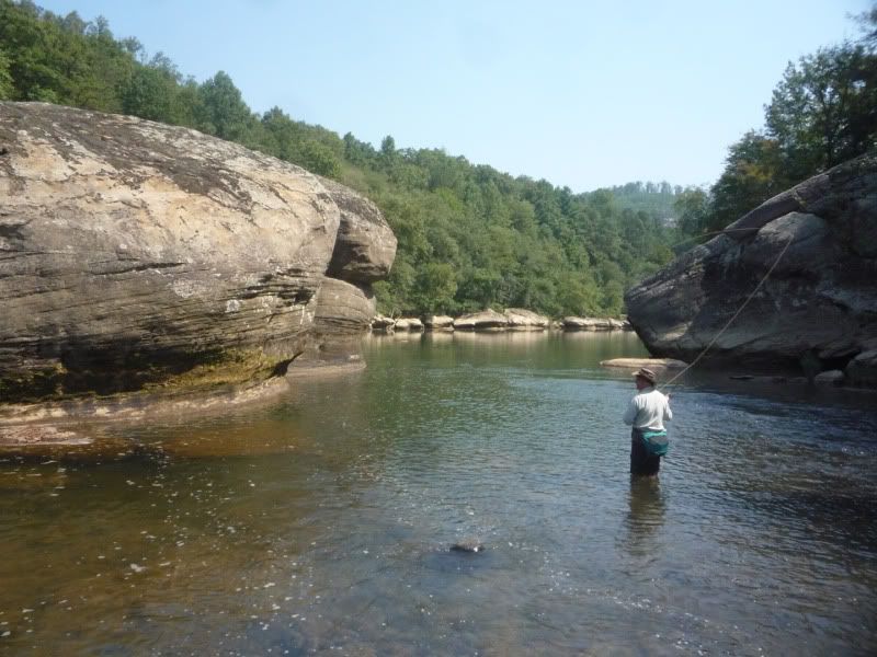 Moved on down stream, switched over to a five inch black streamer, cast into a deep plunge pool between boulders and watched as a two foot long smallmouth came out of nowhere, flashed on my streamer and disappeared in the time it takes to read this sentence....