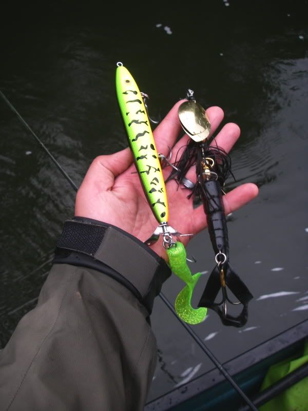 Had a fish swipe and miss this black Slowie Sam spinner, then later, when I eased back up, the same fish annihilated this propbait on the surface. I lost him after 2 headshakes.