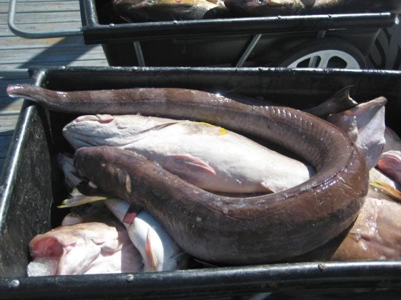 Saw one of the creepiest sea critters I've ever run across on this trip....an eel that was easily 7 feet + long and as big around as my arm.  I know I'm projecting but man it was just evil looking! They kept and cleaned it...supposedly it was delicious but I passed on my share of the meat.