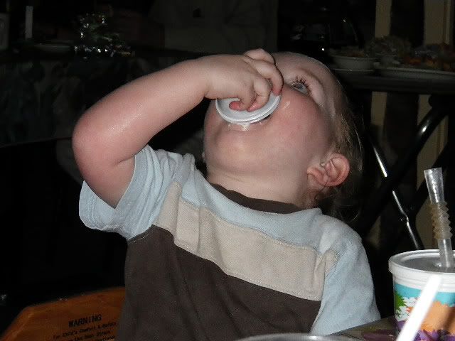 But my niece and two nephews wanted more! This little guy was so hungry waiting on the main course to come out that he resorted to chugging leftover ranch dressing: