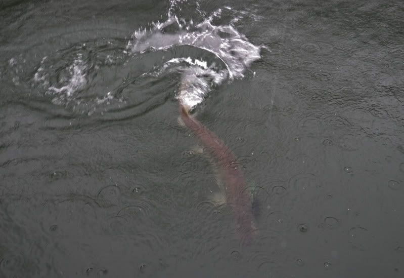 I felt a sense of urgency to fish this rising water as the murkiness rolled in. in the back of my mind I’m thinking…”Yeah, now we’re really gonna need that net.” Yep. Jay launches his SECOND CAST (using my fly with a weight on a spinning rod).
