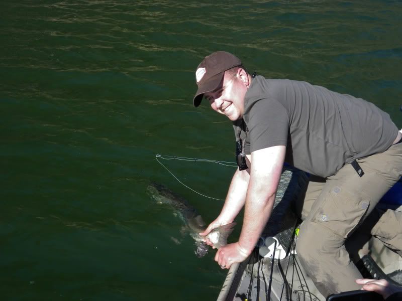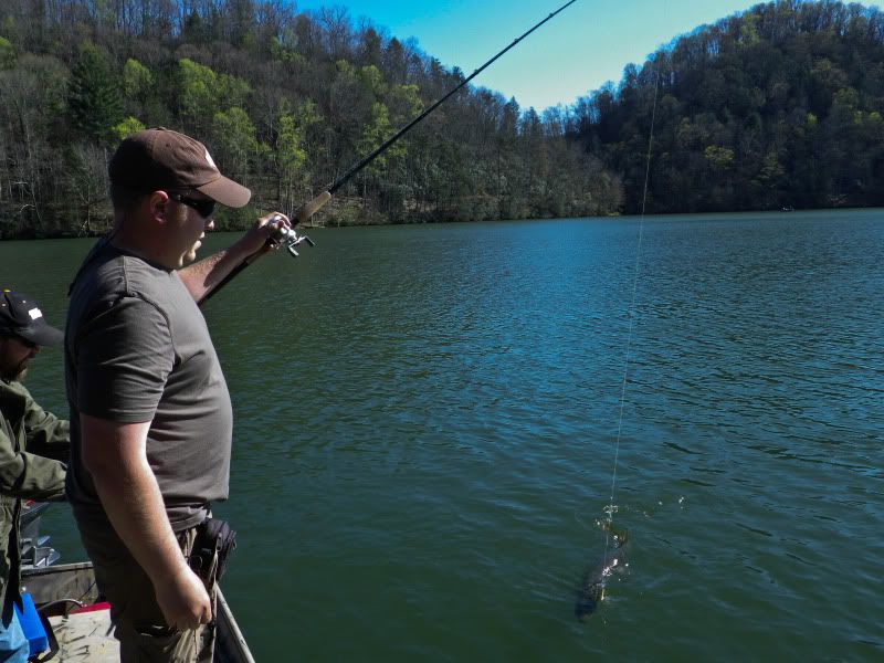 Fished for Crappie with my brother and Jazzi this weekend. A high pressure front and rapid rising lake killed the bite that my brother swore was amazing the day before. My brother's friend Dave later joined us and we decided to hit a high country lake in Virginia to salvage the day. My brother casted for crappies and whitebass, while Dave and I threw for muskie. Spent the whole afternoon telling Dave all about these fish, and how amazing the boatside grabs can be.