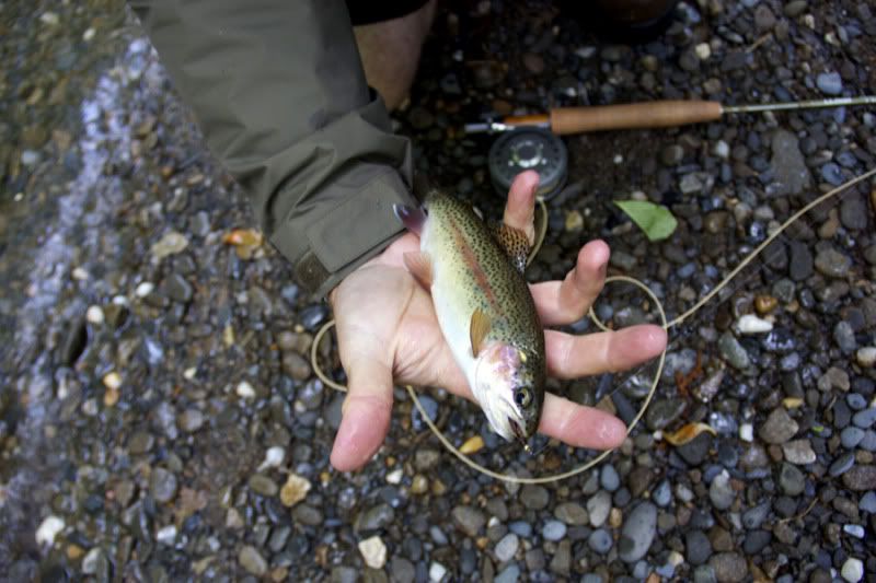 Cool temps and rain seemed to put fish down, but a #14 beadhead squirrel nymph with split shot started to do the trick.