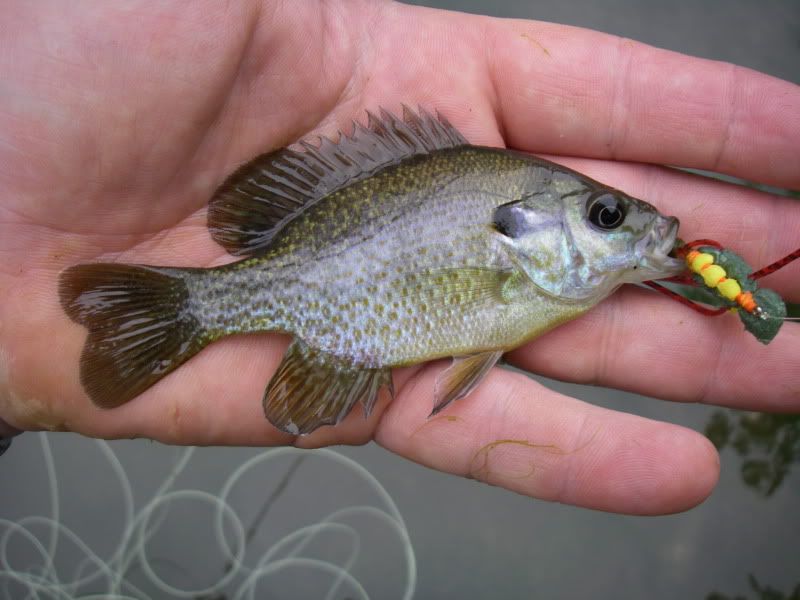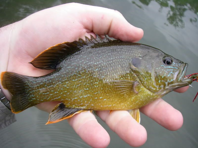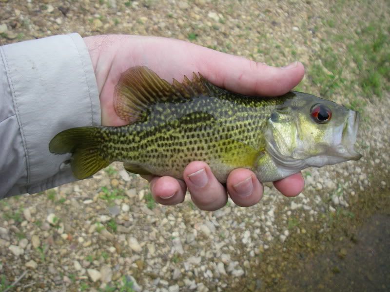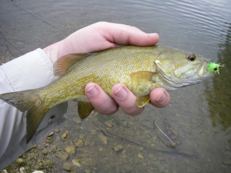 Once we waded in on No Name Creek, we were quickly into some "red eye" but then I leap-frogged Fred and on my second cast I caught this sweet smallie (sorry for the bad photo, I have been focusing more on fishing and less on photog).
