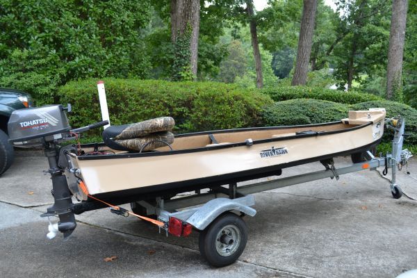 2001 13 foot original Riverhawk--12'6" length and 44" width tan color with black bottom