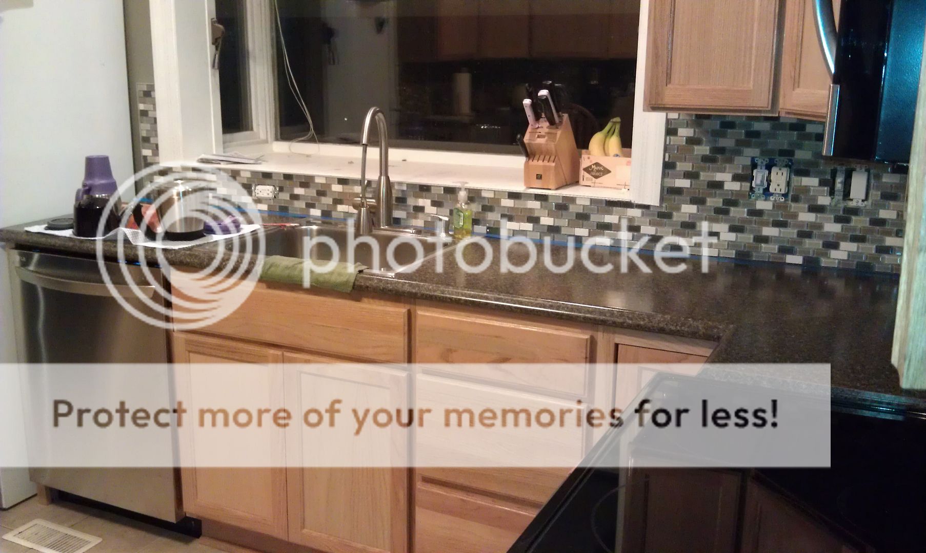 I've been transforming my kitchen.  It all started in July.  The mecca (Home Depot) had a deal on cabinets and countertops that we just couldn't pass up.  I spent the next 6 weeks sanding and finishing the oak cabinets with a water based polyurethane that turned out amazing!  Hard work, but well worth the effort.  We probably saved $10k in labor by doing the project ourselves.