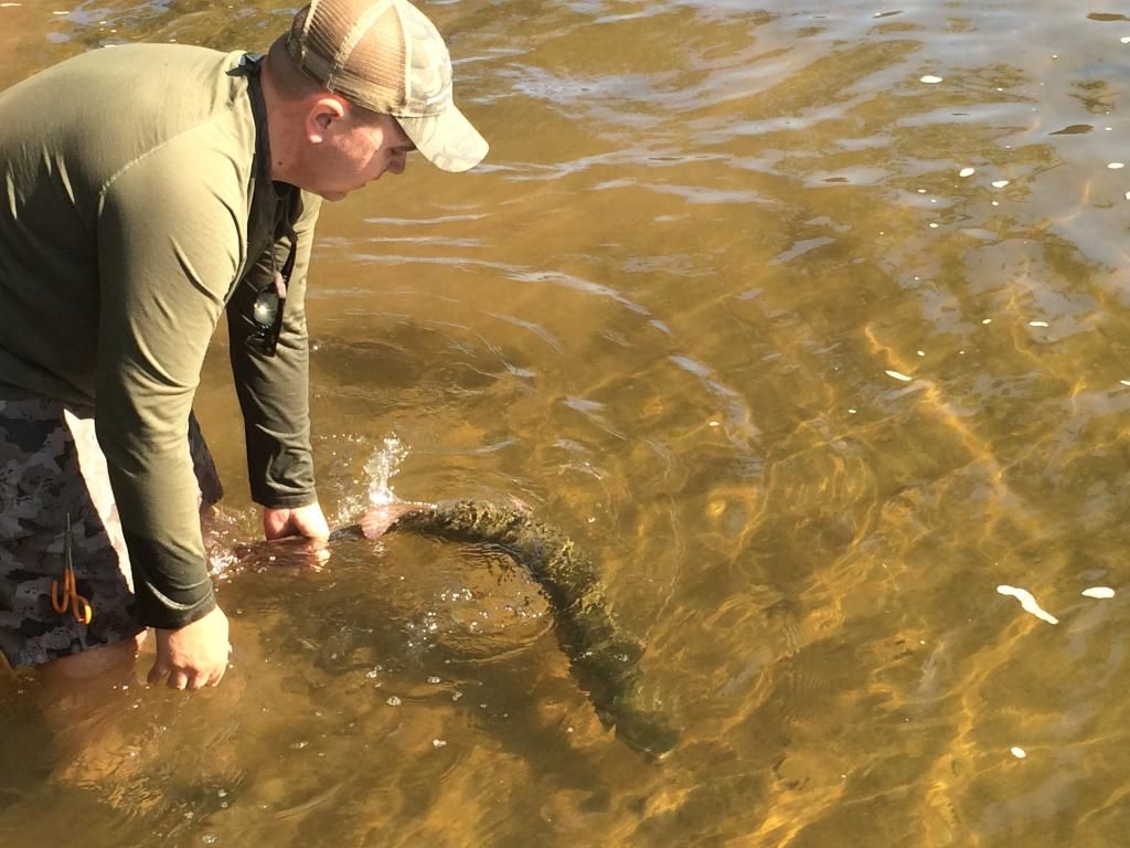 I was carrying on and hollering so loud in disbelief, that I caught the attention of a few campers. Knox and I had a bank side audience as we photographed and released the fish.