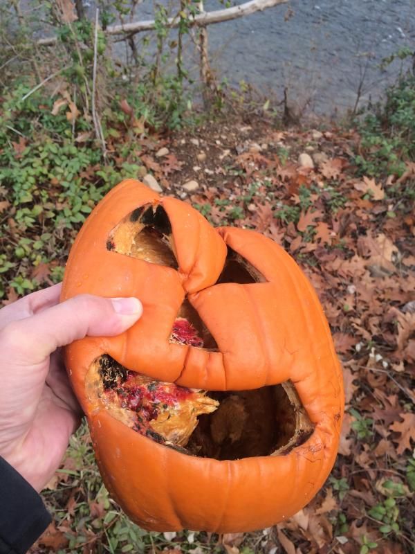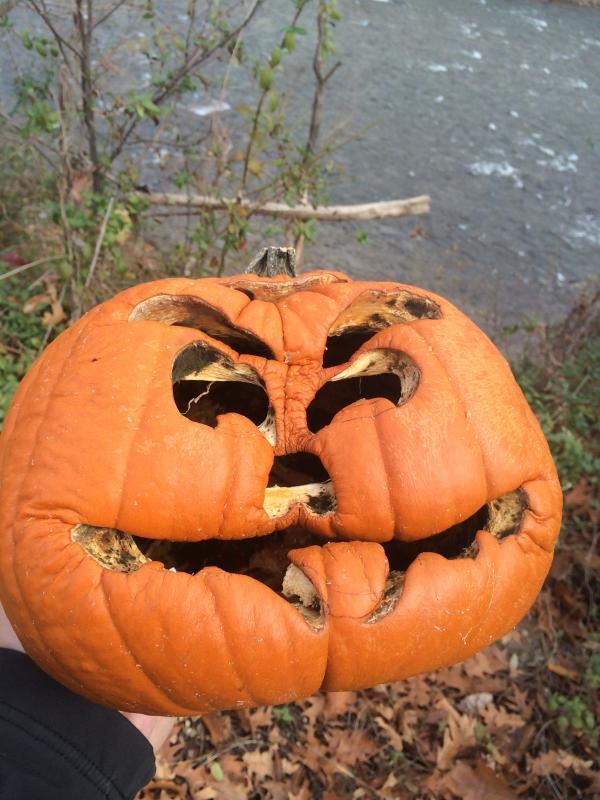 So here’s my offering to the musky gods….two pumpkins chunked into a musky river to get this skunk off.