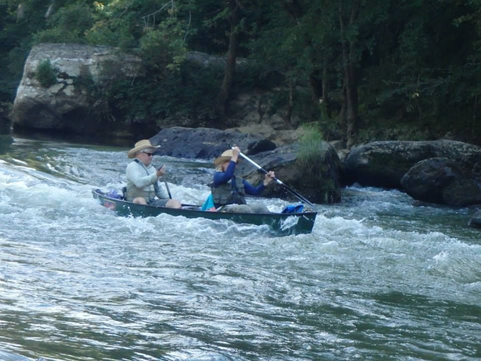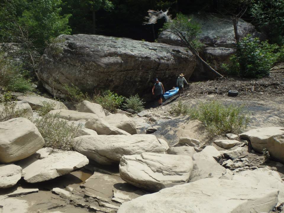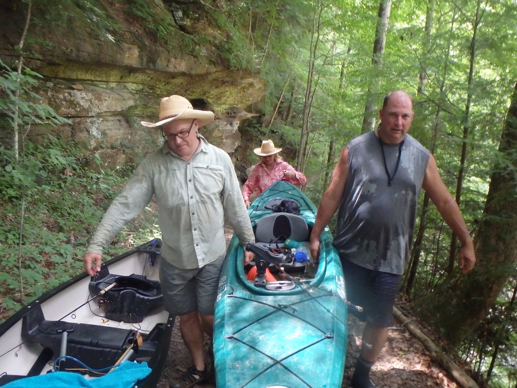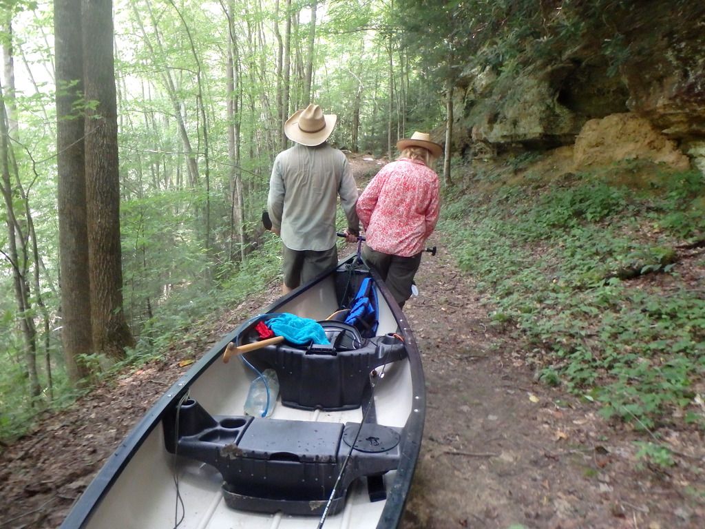 We had to portage around a rough patch of water with two loaded kayaks and a canoe to start out our trip.