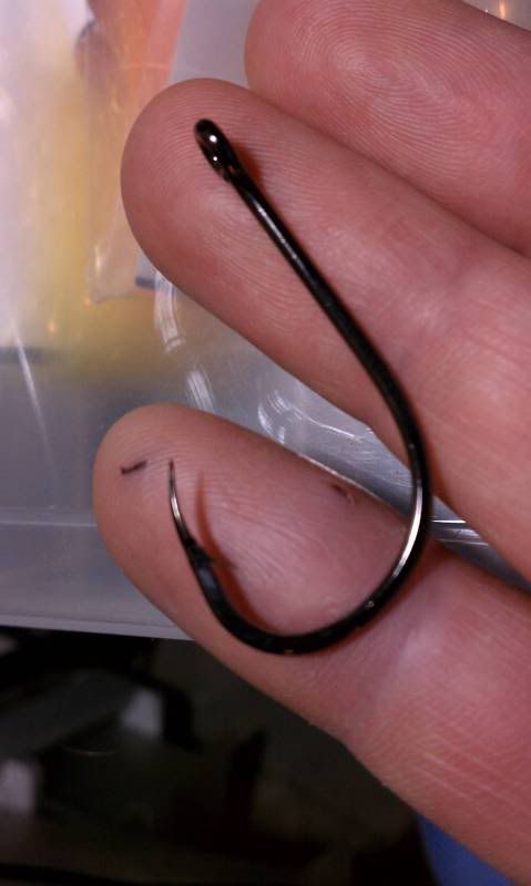 Here's a photo for reference of the entry and exit of the 4-0 SP Hook.