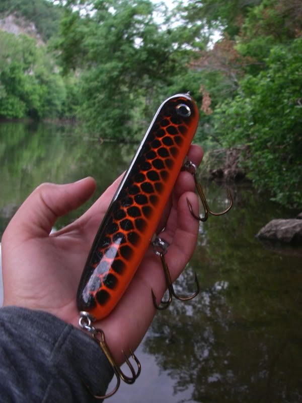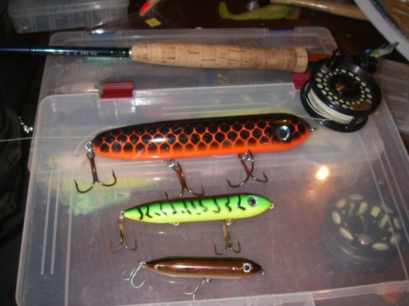 So I earnestly rigged up my giant Orange Weagle ( that looks more like a Summer Sausage with hooks). This thing lands like a wet Nerf football in the water..but I really loved the SWOOSH it made on the splashy wide wakes.