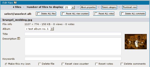 Note: If the first method is used and the image later deleted, the thumbnail will also be deleted and the default Coppermine thumbnails will be displayed, instead.